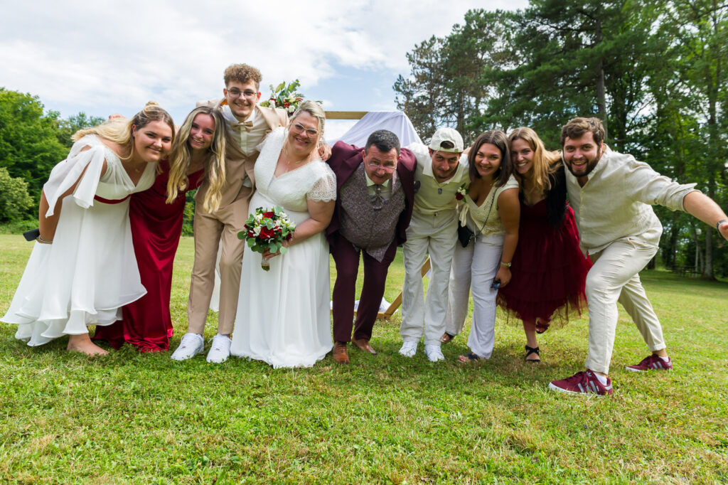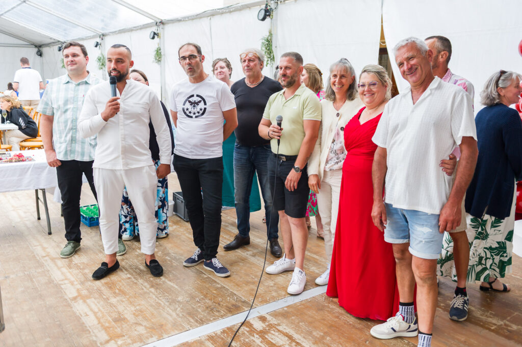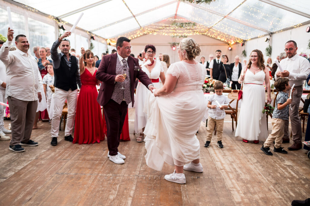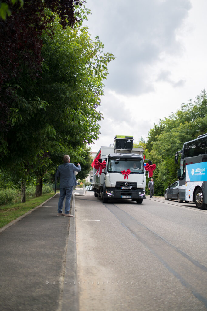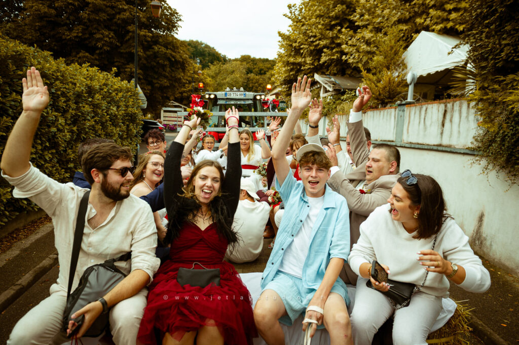 Je retiens toutefois l’arrivée des mariés, proches et témoins… sur un char de tracteur. Quel moment festif inoubliable !