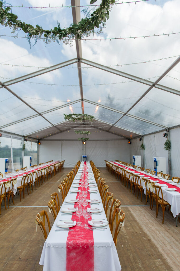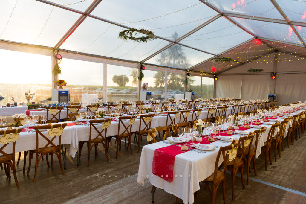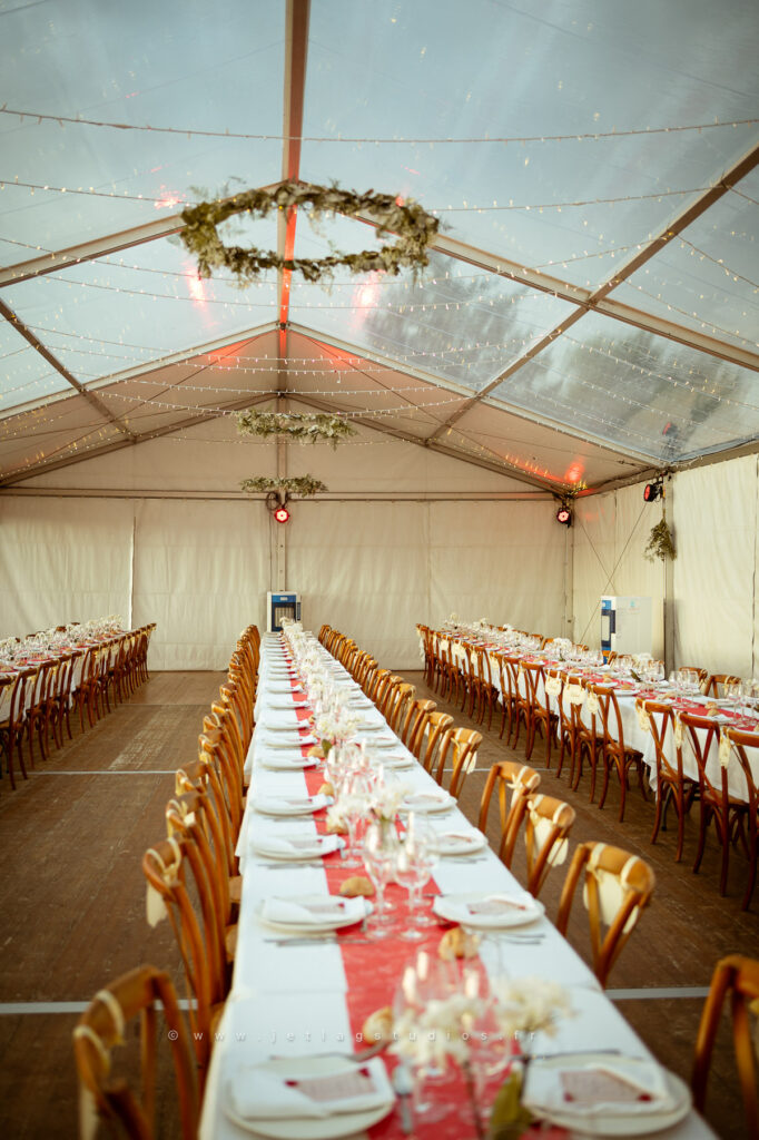 Une union d’exception entièrement célébrée à Sainte-Croix, marquée par des préparatifs colossaux pour accueillir 250 invités sous un superbe chapiteau : tout en élégance et raffinement.