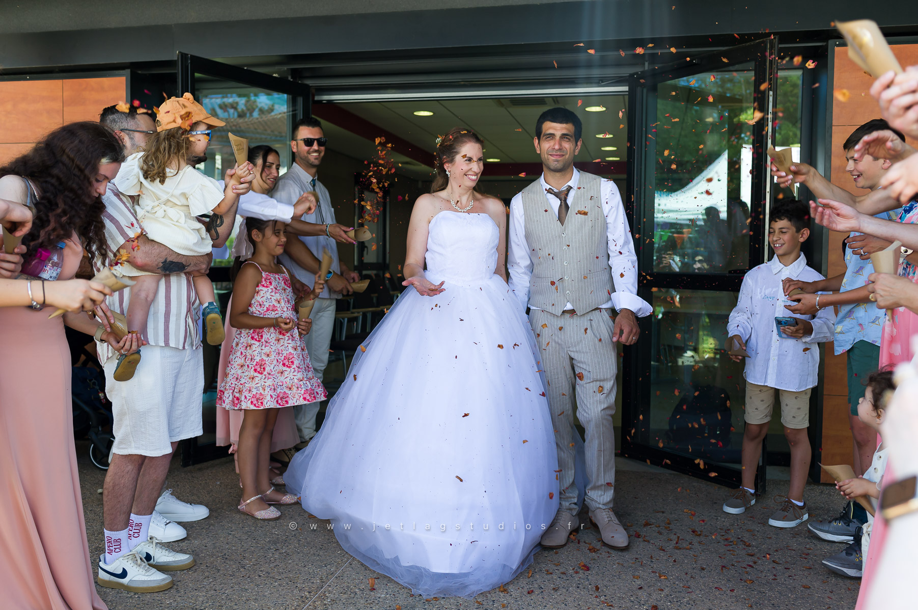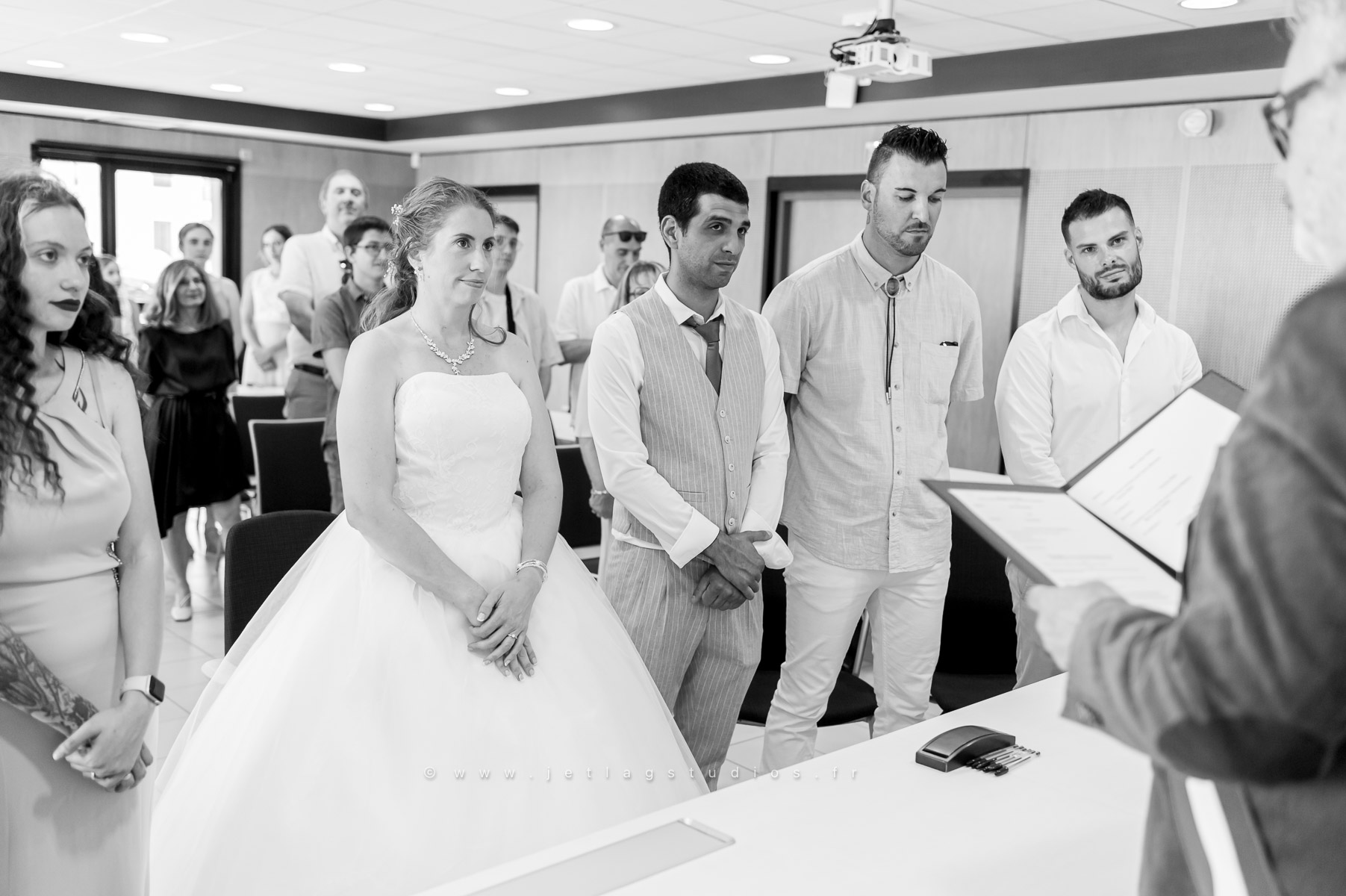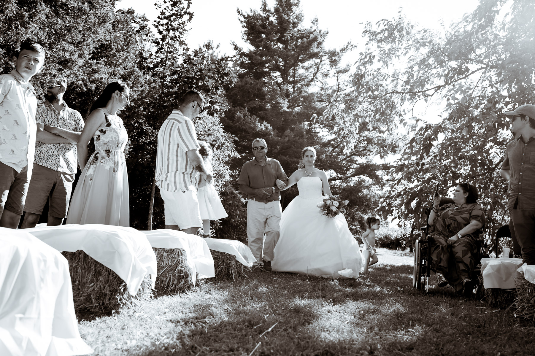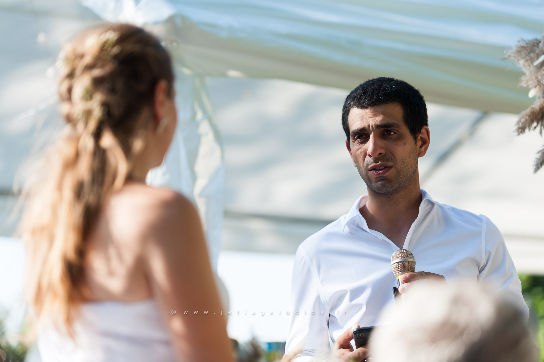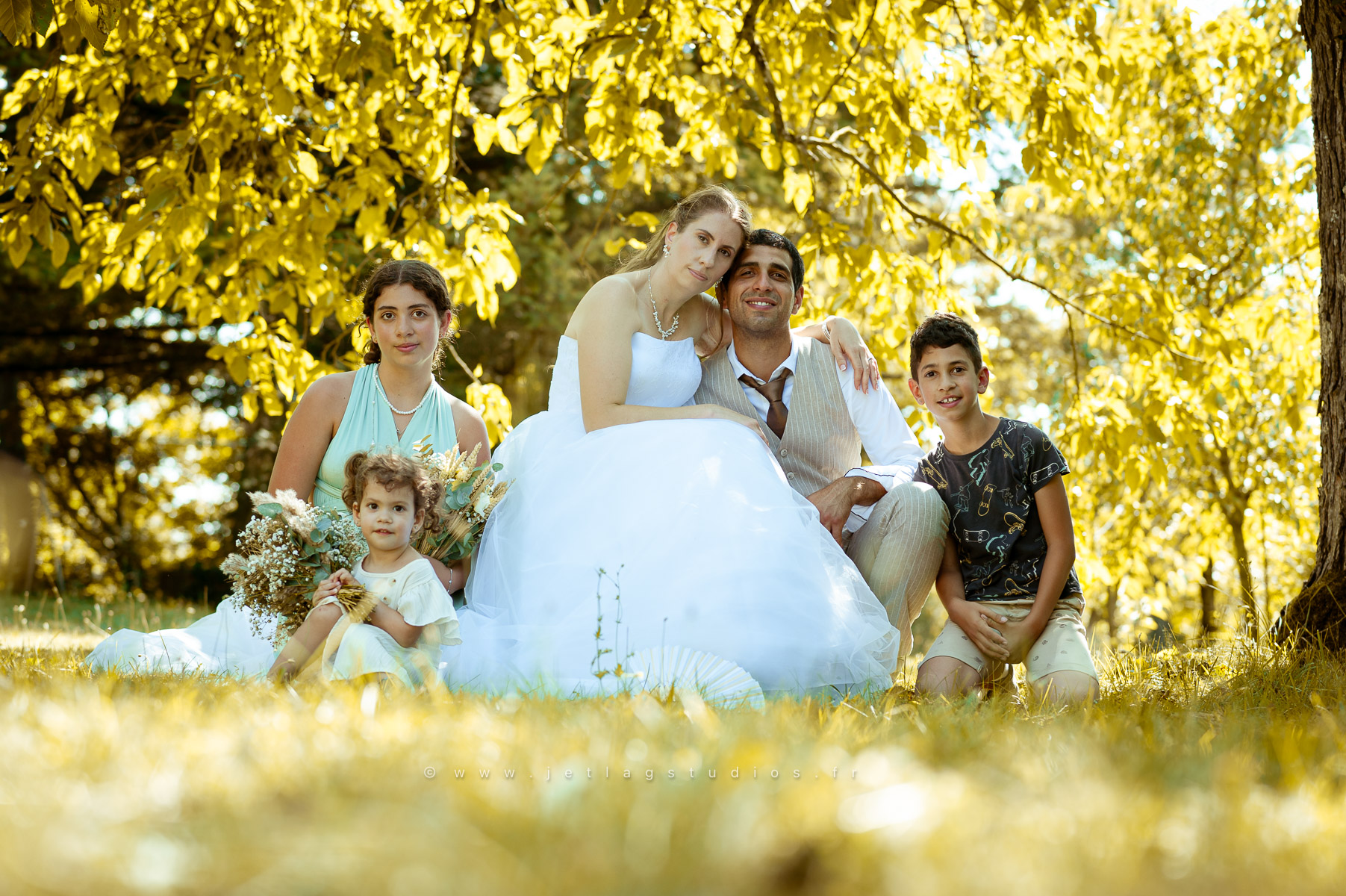 Un joli “oui” à la mairie de Villieu, puis direction une propriété privée arborée pour le reste de la journée : photos de couple à l’ombre des arbres, cérémonie laïque pleine d’émotions, photos de groupes décontractées, et un goûter/vin d’honneur convivial sous le signe de la bonne humeur.