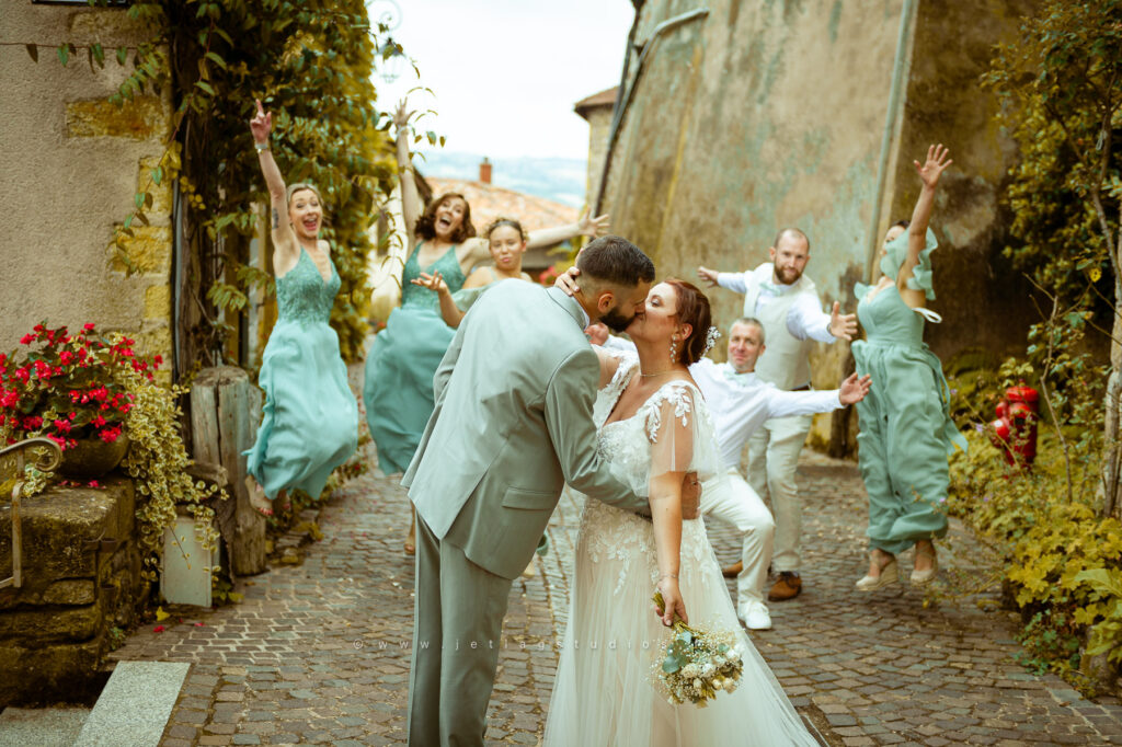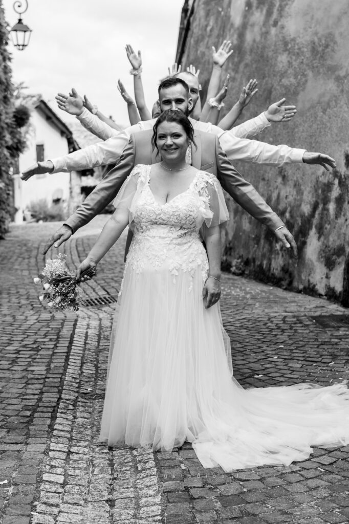 Même si la météo nous a joué des tours, je garderai en mémoire de cette journée, les belles rues de ce village médiéval offrant un fabuleux cadre pour cet exercice photo, le dress code respecté à la perfection par les témoins et demoiselles d’honneur, une arrivée atypique en buggy, et tant de beaux moments partagés !