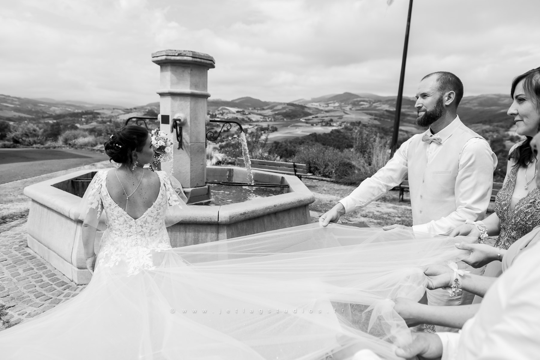 Même si la météo nous a joué des tours, je garderai en mémoire de cette journée, les belles rues de ce village médiéval offrant un fabuleux cadre pour cet exercice photo, le dress code respecté à la perfection par les témoins et demoiselles d’honneur, une arrivée atypique en buggy, et tant de beaux moments partagés !