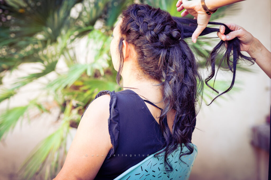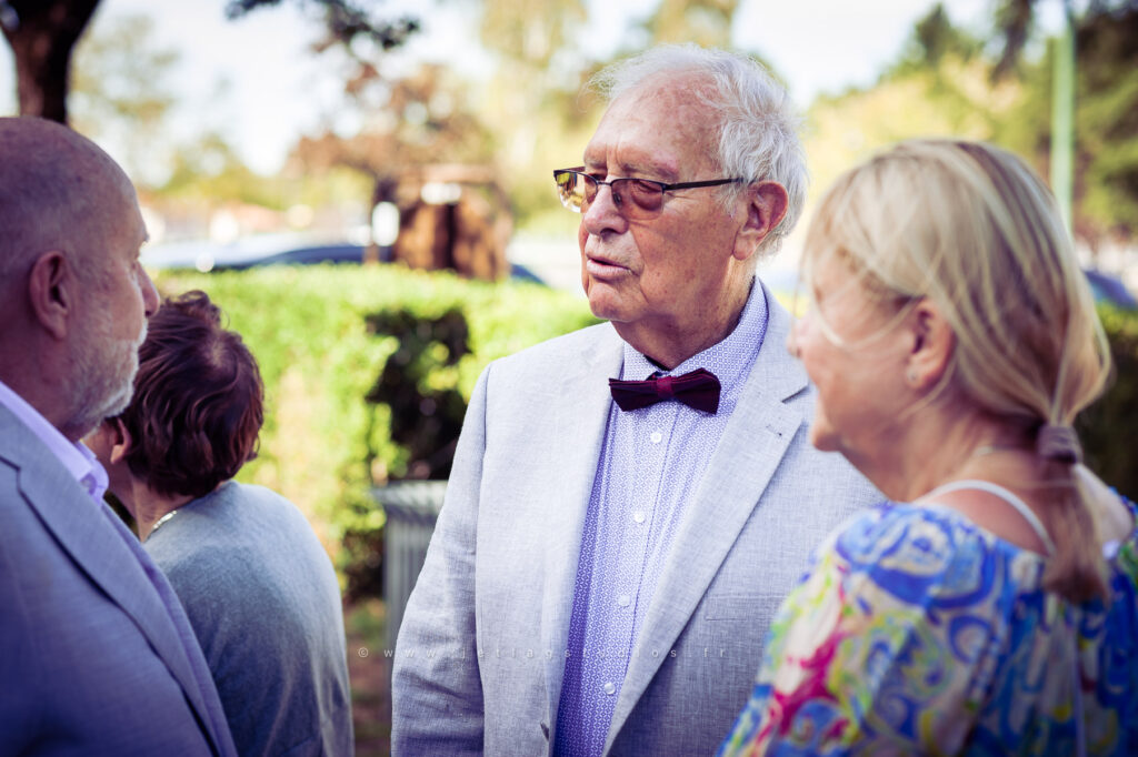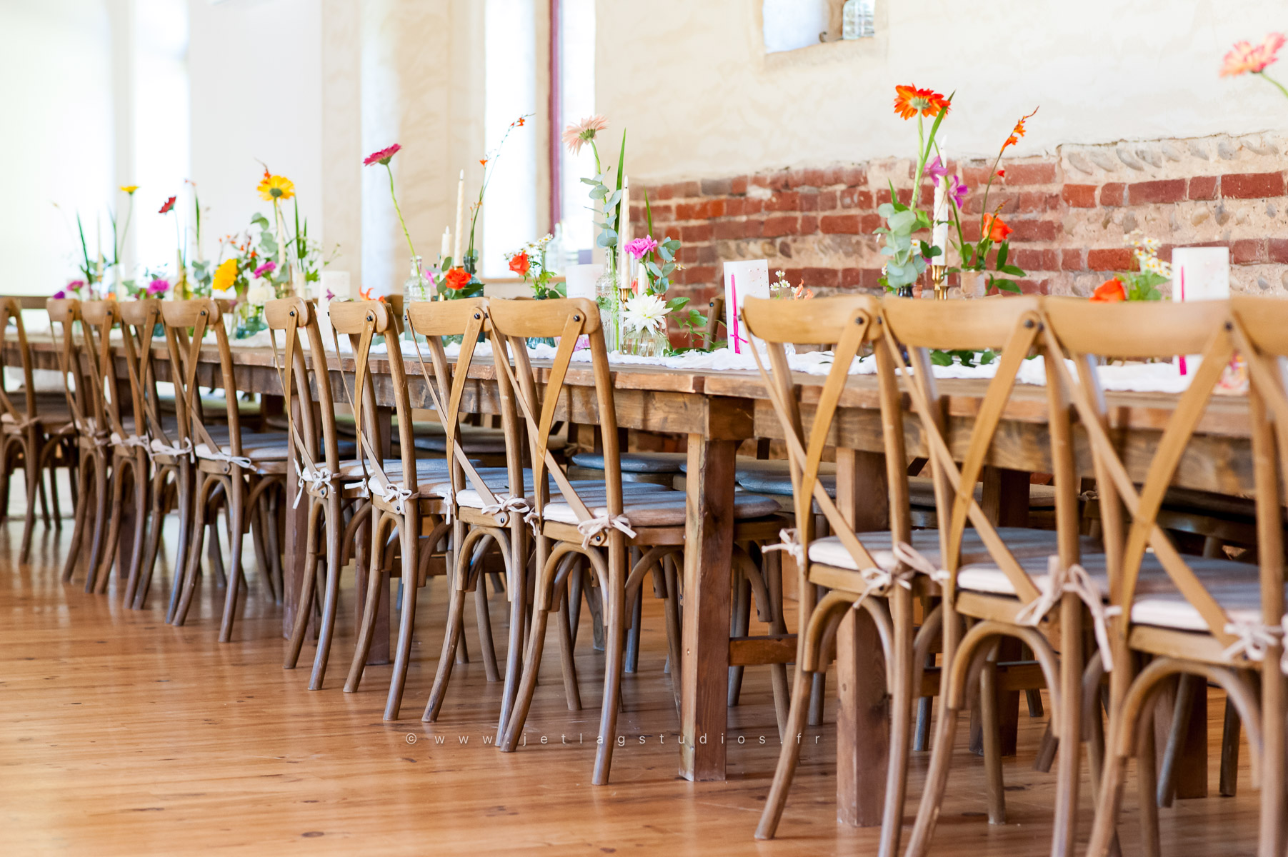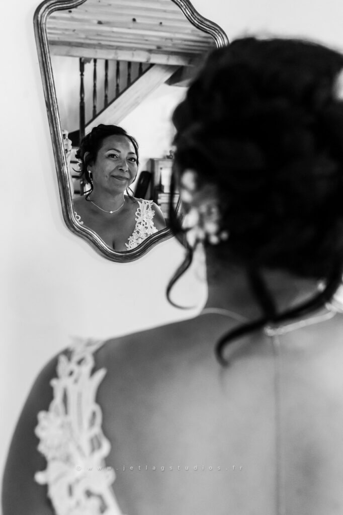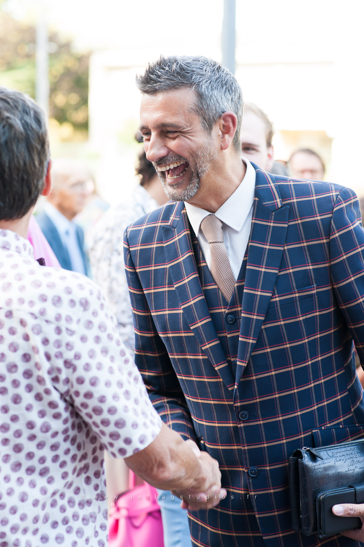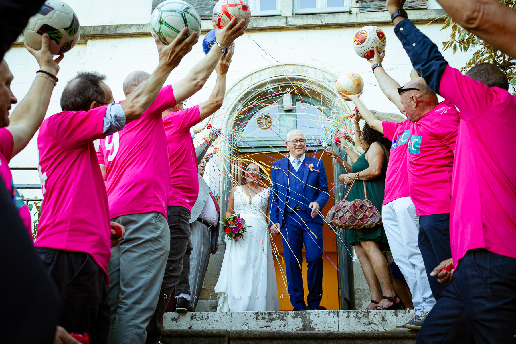 Les préparatifs se font en extérieur, sans chichi, tel un moment de partage avec les familles proches déjà sur place. On enfile la robe et le costume, la tension monte, mais la bonne humeur est toujours bien là ! Nous faisons route pour Montluel, ou l’adjointe recueillera les « oui » de rigueur, et où nous avons profité du petit lavoir pour faire nos photos de groupes. Il ne faut pas trop que cela traine, Sandrine veut passer à la suite.