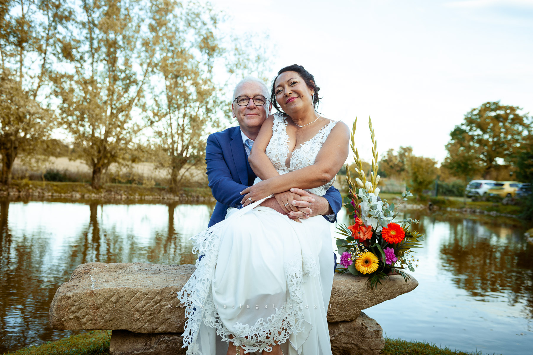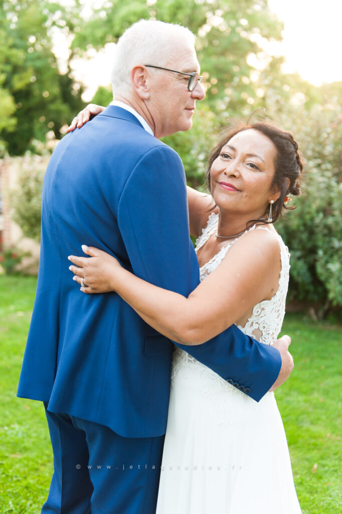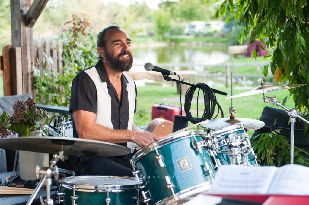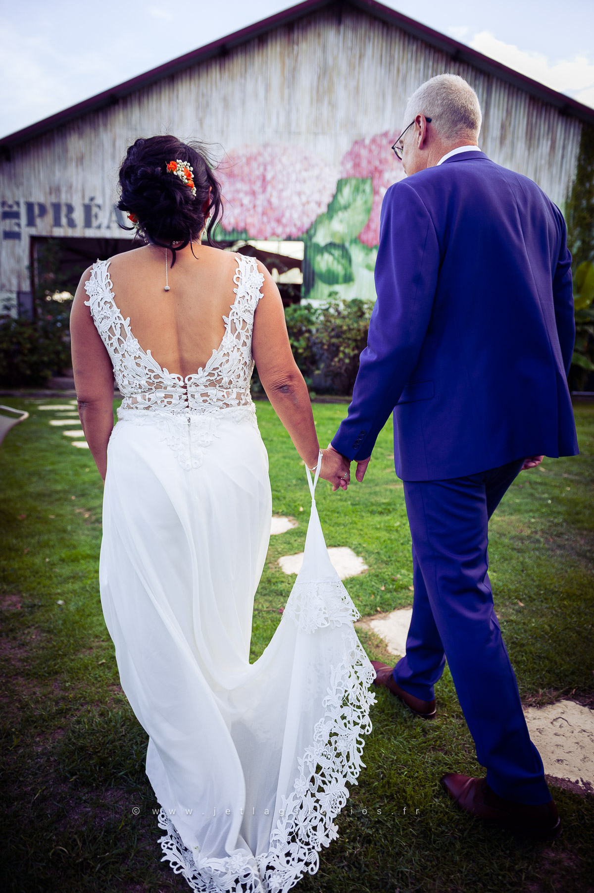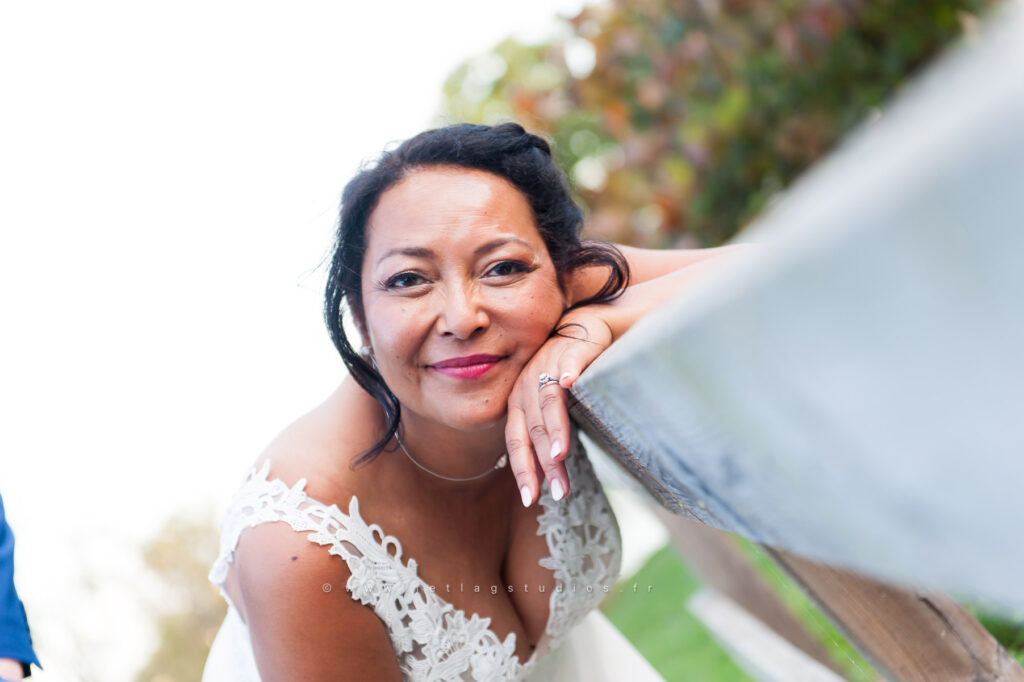 On la comprend : food truck créole au domaine, groupe musical proposant une ambiance lounge du plus bel effet et envie de partager avec les proches : que demander de mieux ? Ah si je sais : un moment pour la séance couple que Sandrine et Bruno repoussent encore et encore : ils m’avaient prévenu, ils ne sont pas à l’aise avec cela et ne veulent pas consacrer trop de temps à cela. C’est donc en 15min chrono que nous ferons ces quelques images : challenge relevé, Sandrine a même gardé son sourire (qu’elle sait mettre de côté rapidement quand ça ne va pas !)