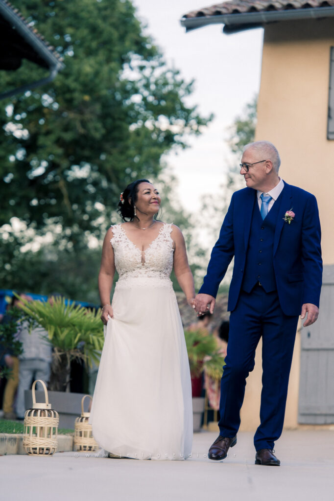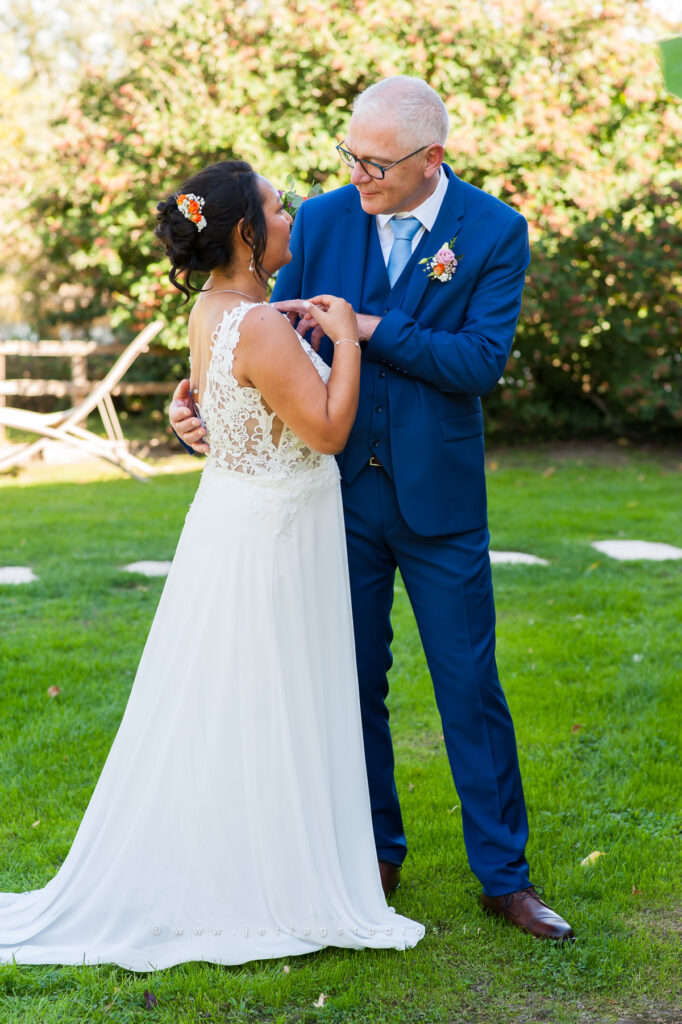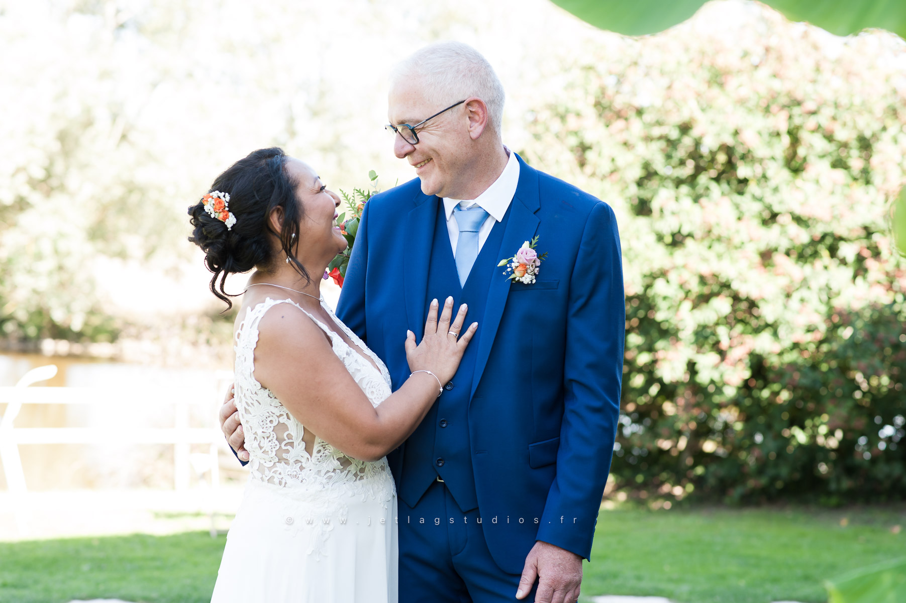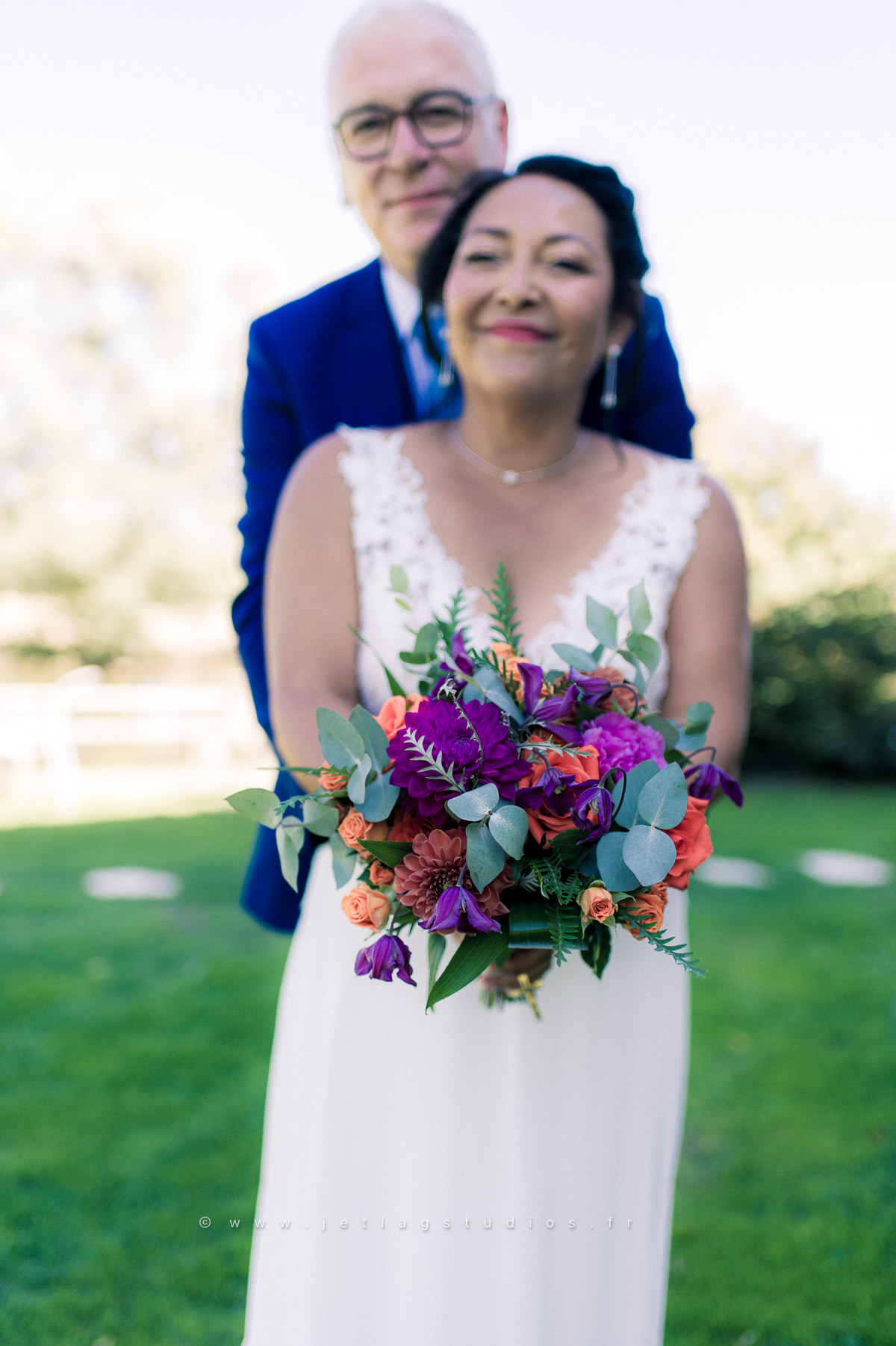 On la comprend : food truck créole au domaine, groupe musical proposant une ambiance lounge du plus bel effet et envie de partager avec les proches : que demander de mieux ? Ah si je sais : un moment pour la séance couple que Sandrine et Bruno repoussent encore et encore : ils m’avaient prévenu, ils ne sont pas à l’aise avec cela et ne veulent pas consacrer trop de temps à cela. C’est donc en 15min chrono que nous ferons ces quelques images : challenge relevé, Sandrine a même gardé son sourire (qu’elle sait mettre de côté rapidement quand ça ne va pas !)